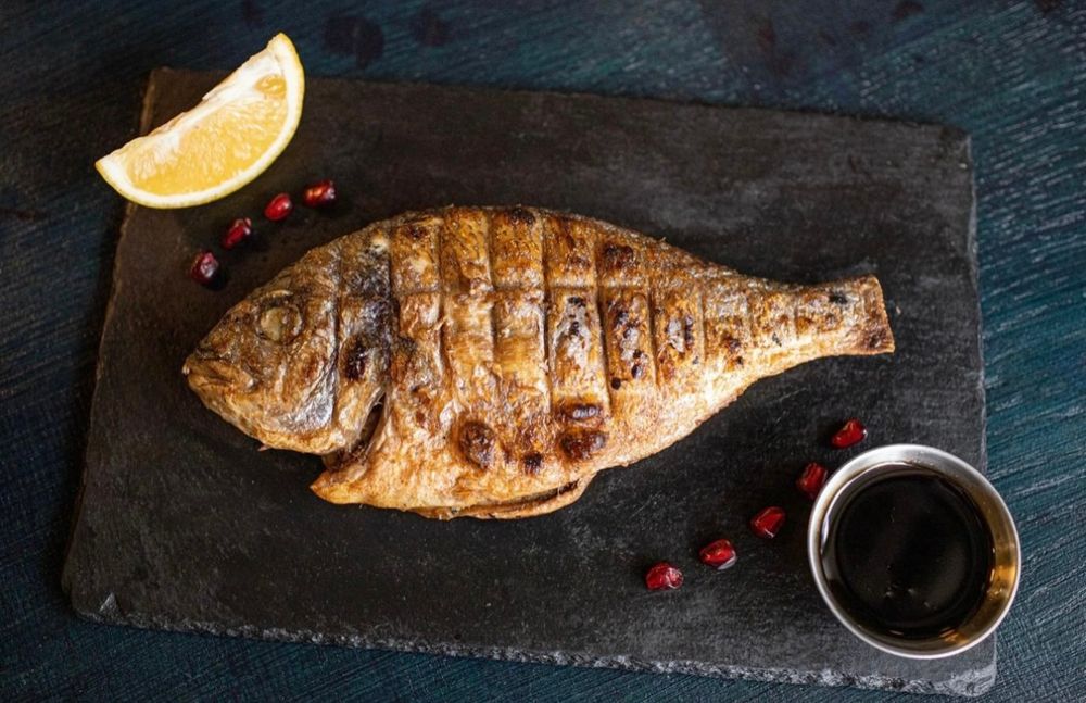 Дорадо 1 шт, соус наршараб, специи, лимон
