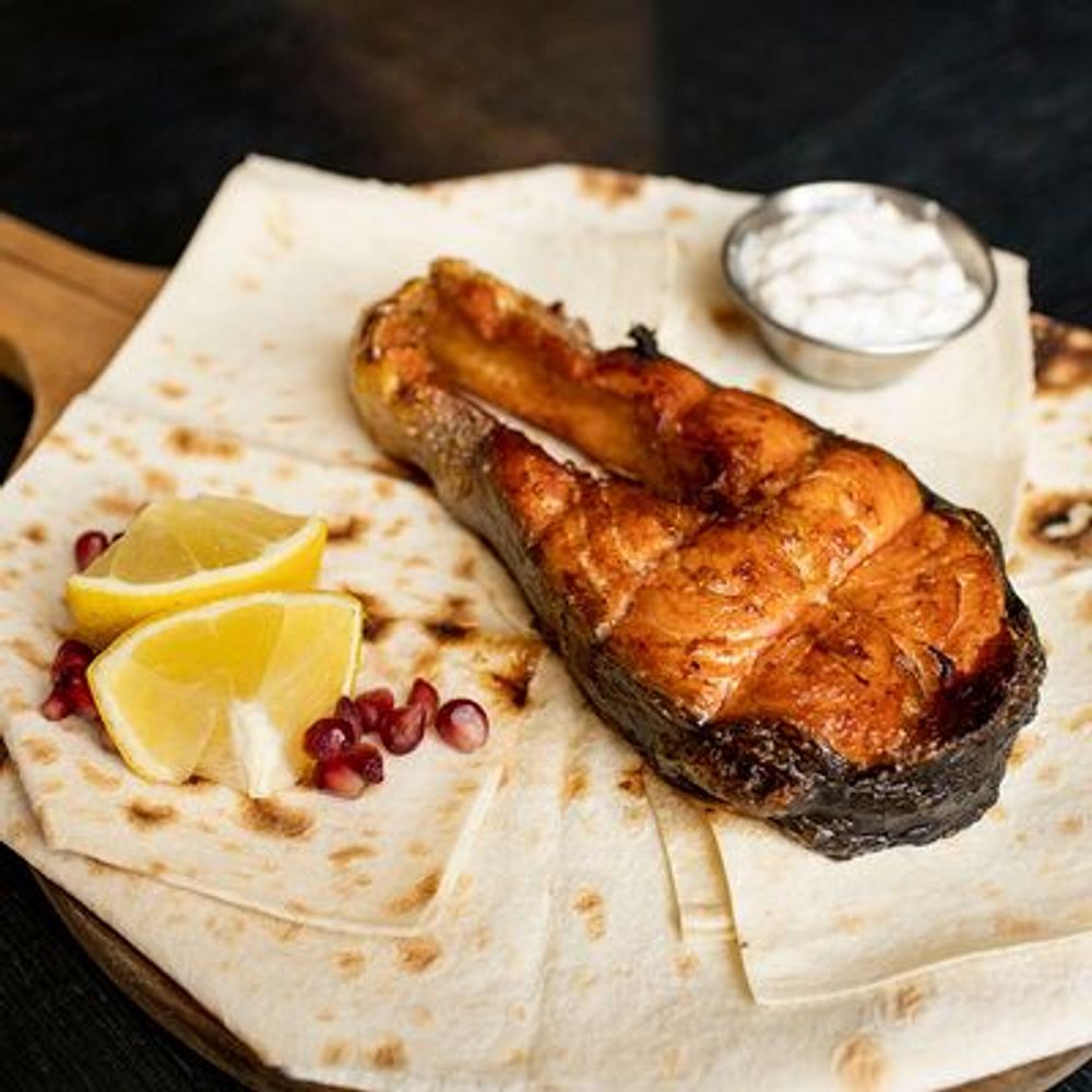 Форель, соус тартар, лимон, специи