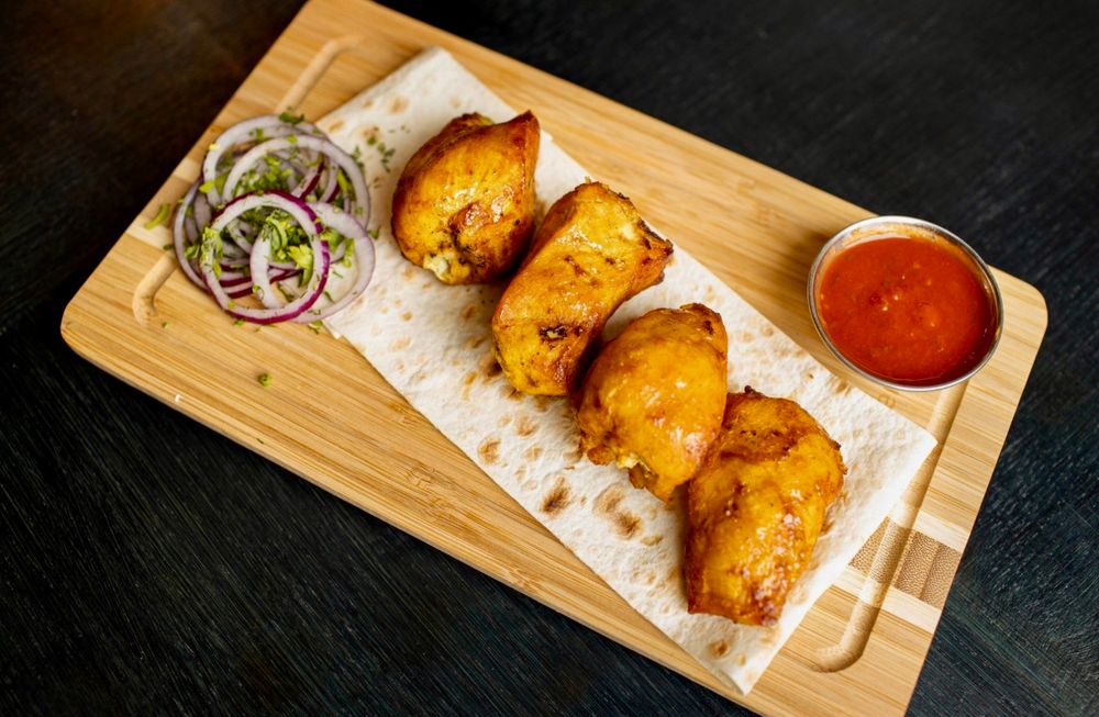 Куриная грудка, соус шашлычный, лаваш, лук красный